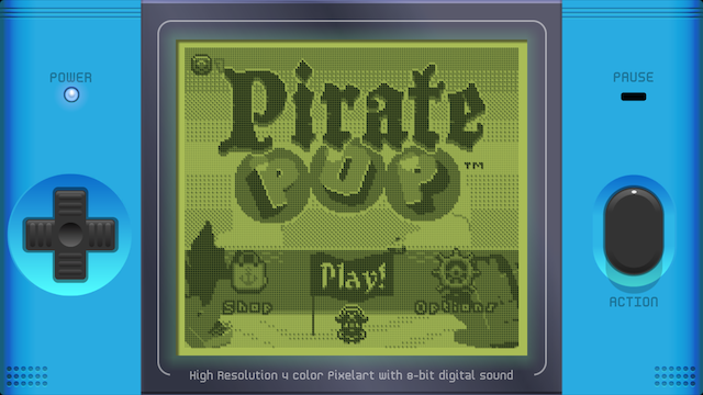 Pirate Pop™ is a super addictive, gravity-defying, score-chasing, bubble-busting, retro-style arcade game. Join Pete Jr on his quest to defeat the nefarious Bubble Pirate! Dodge and pop bubbles while collecting coins. Use coins to customize your pocket game with new faceplates, buttons, backlights, and more!